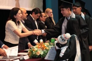 Al participar en la ceremonia de graduación de la generación 2022–2025 del Colegio de Estudios Científicos y Tecnológicos del Estado de Michoacán (Cecytem), plantel Capula, la funcionaria estatal reiteró el compromiso del Gobierno del Estado por garantizar que ningún joven se quede sin la posibilidad de continuar su formación profesional.