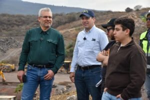 Morelia, Michoacán, 17 de abril de 2026.- El gobernador Alfredo Ramírez Bedolla y el secretario de Comunicaciones y Obras Públicas, Rogelio Zarazúa Sánchez, supervisaron las labores de construcción del primer segmento del segundo anillo periférico de Morelia, el cual reporta un avance del 85 por ciento en su conexión entre La Estancia (salida a Pátzcuaro) y Tacícuaro (salida a Quiroga).