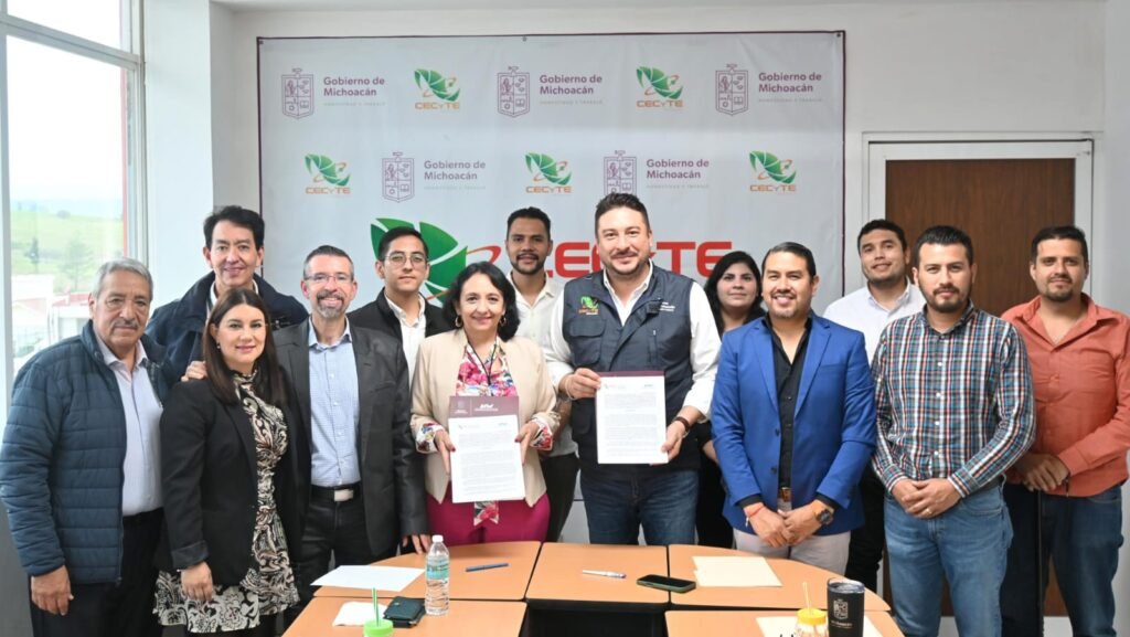 Morelia, Michoacán, 12 de septiembre de 2025.- El Colegio de Estudios Científicos y Tecnológicos del Estado de Michoacán (Cecytem) y la Universidad Tecnológica de Morelia (UTM) realizaron una alianza educativa que beneficiará a la comunidad escolar y a sus familiares.