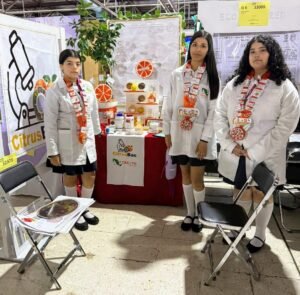 Las alumnas Dana Paola Oliveros Pinceno, Evelyn Reina Hernández Puga y Camila Govea Ayala presentaron Citrusbac, un estudio de la capacidad bactericida de los extractos naturales de la toronja contra Escherichia coli, bacteria que vive en el intestino de las personas y animales.