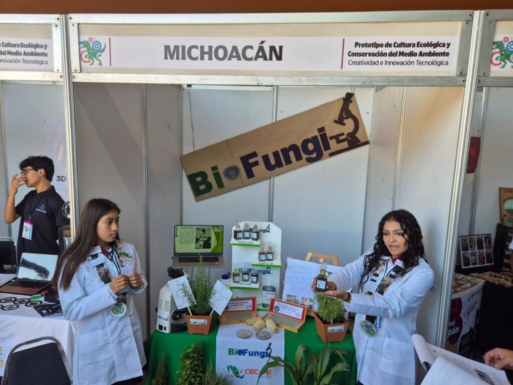 Jessica Nayeli Martínez Ramírez y Juana Isabel Suárez Rodríguez presentaron el proyecto ecológico Biofunji, un fungicida natural para controlar los hongos en los cultivos de maíz, que se convierte en una alternativa sostenible a los agroquímicos convencionales.