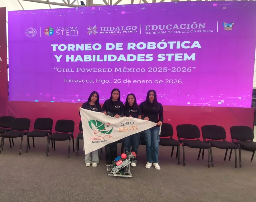 Pachuca, Hidalgo 26 de enero de 2026.- Alumnas del Colegio de Estudios Científicos y Tecnológicos del Estado de Michoacán (Cecytem), integradas en tres equipos de robótica, iniciaron su participación en el Girl Powered 2026. Las estudiantes, provenientes de los planteles Epitacio Huerta, Capula, Lagunillas y el Centro de Educación Media Superior a Distancia Buenavista, compiten en este campeonato nacional de habilidades STEM exclusivo para mujeres, que se desarrolla los días 26 y 27 de enero en Pachuca, Hidalgo.