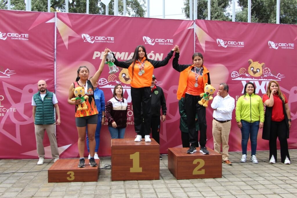 Metepec, Estado de México, 26 de junio de 2025.- Estudiantes del Colegio de Estudios Científicos y Tecnológicos del Estado de Michoacán (Cecytem) obtuvieron medallas de plata y bronce en atletismo y lanzamiento de jabalina, durante su participación en el XXI Encuentro Nacional Deportivo de los Cecytes, que se celebra en el Estado de México, del del 23 al 27 de junio.
