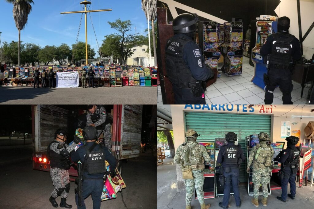Morelia, Michoacán, 12 de enero del 2026.- Como parte de la Estrategia Nacional contra la Extorsión, la Secretaría de Seguridad Pública (SSP) informa que Morelia, Uruapan y Apatzingán tuvieron el mayor número de máquinas tragamonedas aseguradas en 2025, con mil 121, 544 y 408 respectivamente.