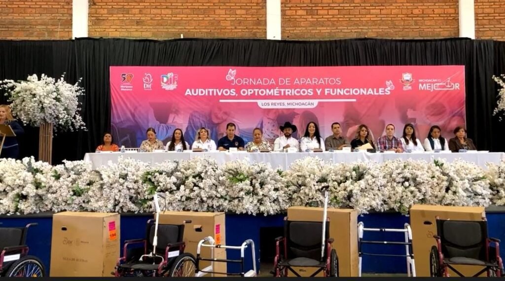 Con el objetivo de contribuir a mejorar la calidad de vida de la población de Los Reyes, el presidente municipal, Humberto Jiménez Solís, encabezó la entrega de aparatos auditivos, optométricos y funcionales.