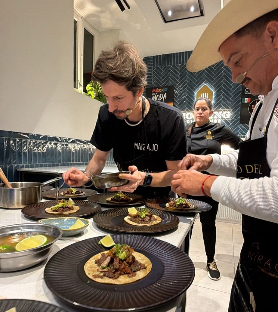 Roberto Monroy García, titular de la Secretaría de Turismo de Michoacán (Sectur), quien encabeza los trabajos promocionales y de negocios de la comitiva michoacana, señaló que el encargado de representar a “el alma de México” fue Sergio Olivo, originario de Quiroga, quien se unió a Roberto Martínez, de España, para preparar los mejores tacos con carnitas michoacanas como ingrediente principal.