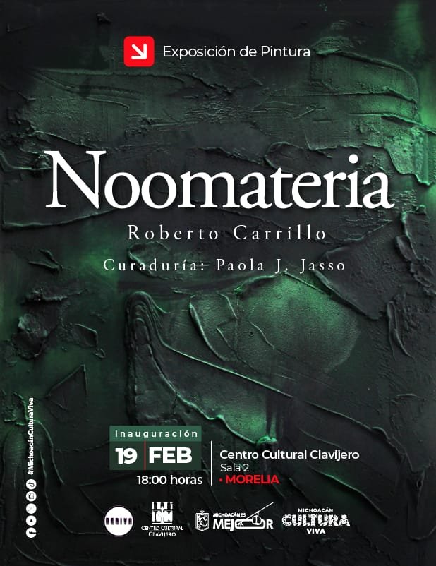 La entrada a las salas es gratuita. Las exposiciones de Rocío Caballero y Marco Lamoyi podrán visitarse hasta el 26 de julio de 2026, mientras que “Noomateria” permanecerá abierta hasta el 24 de mayo de 2026. Con esta triple inauguración, el Centro Cultural Clavijero fortalece su programación con propuestas que dialogan, desde distintas perspectivas, sobre la pintura y la imagen contemporánea.
