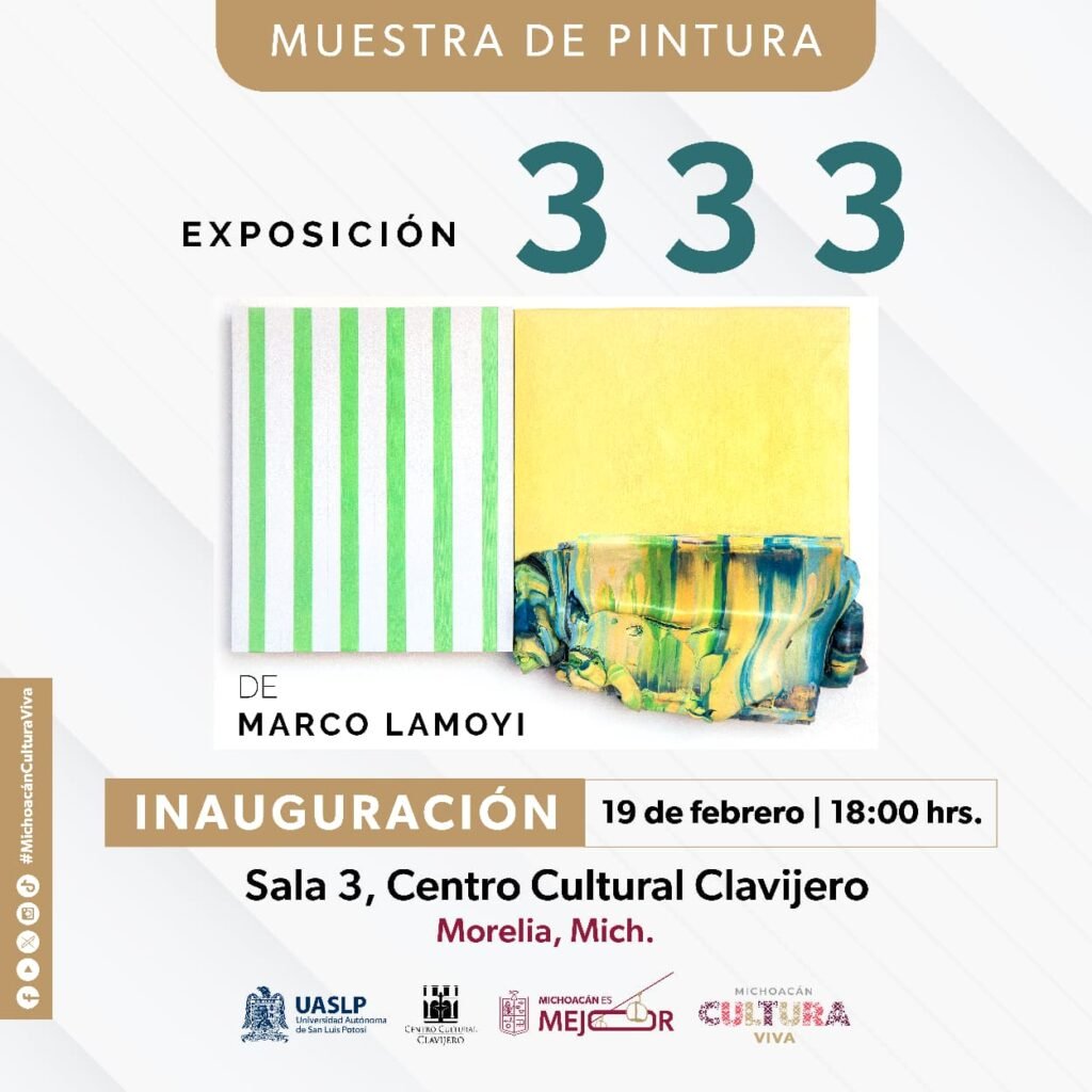 Asimismo, en la Sala 3 se inaugurará “333”, de Marco Lamoyi, artista formado en La Esmeralda y en la Facultad de Arquitectura de la UNAM, reconocido como precursor del postmodernismo y el postconceptualismo en México. La exposición reúne pintura, fotografía e instalación en una selección de obra reciente que expande los límites del plano pictórico hacia lo tridimensional; el título alude al simbolismo del número 333 como una reflexión sobre la creatividad y la conexión.