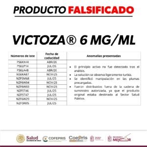 COFEPRIS EMITE ALERTA SANITARIA POR FALSIFICACIÓN DEL MEDICAMENTO VICTOZA