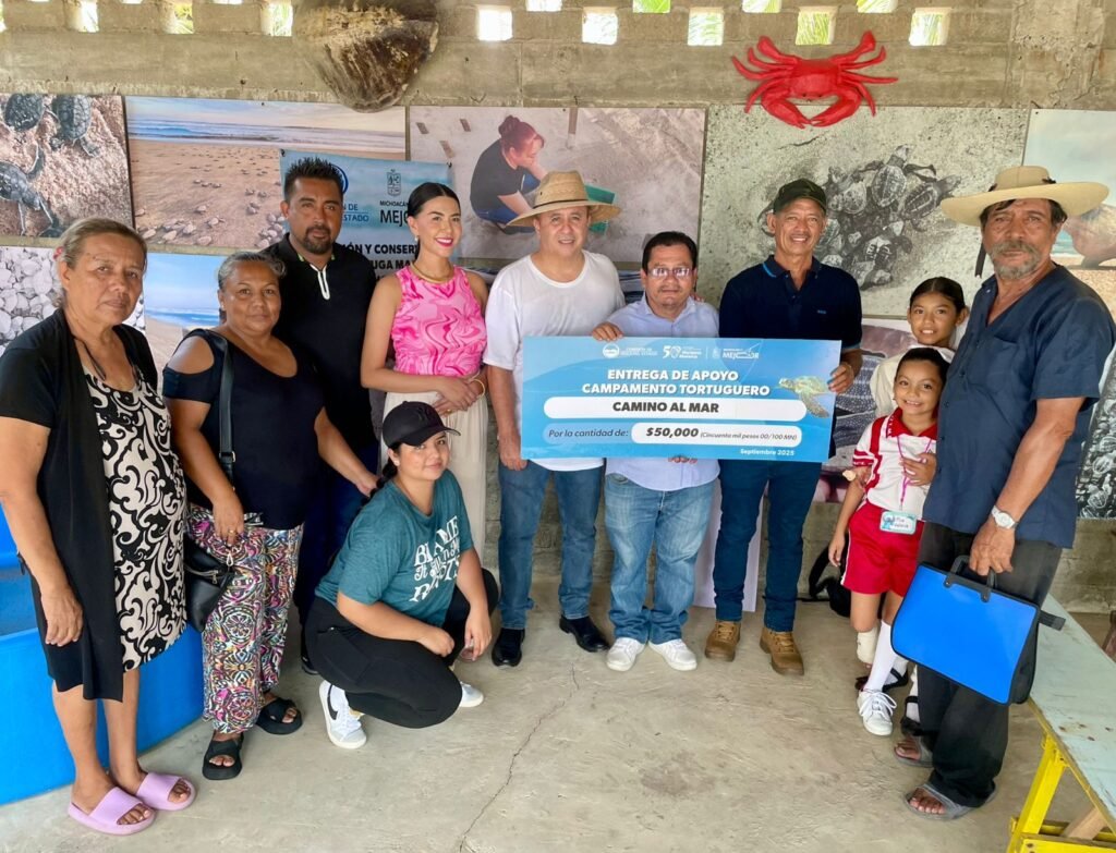 Lázaro Cárdenas, Michoacán, 24 septiembre de 2025.- La Comisión de Pesca del Estado de Michoacán (Compesca) inició la entrega de apoyos económicos de 50 mil pesos a los primeros 15 campamentos tortugueros de la entidad, destinados a la protección de la tortuga marina.