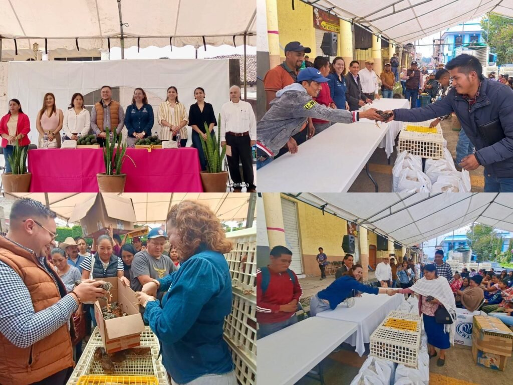 Morelia, Michoacán, 26 de agosto de 2025.- El Gobierno de Michoacán a través de la Secretaría de Agricultura y Desarrollo Rural (Sader), que encabeza Cuauhtémoc Ramírez Romero, entregó diez mil aves de doble propósito y mil kilogramos de micelio para la producción de hongo seta, en los municipios de Los Reyes, Peribán y Tancítaro, a través del programa insignia Agrosano, como parte de la vertiente “Produce lo que te comes”.