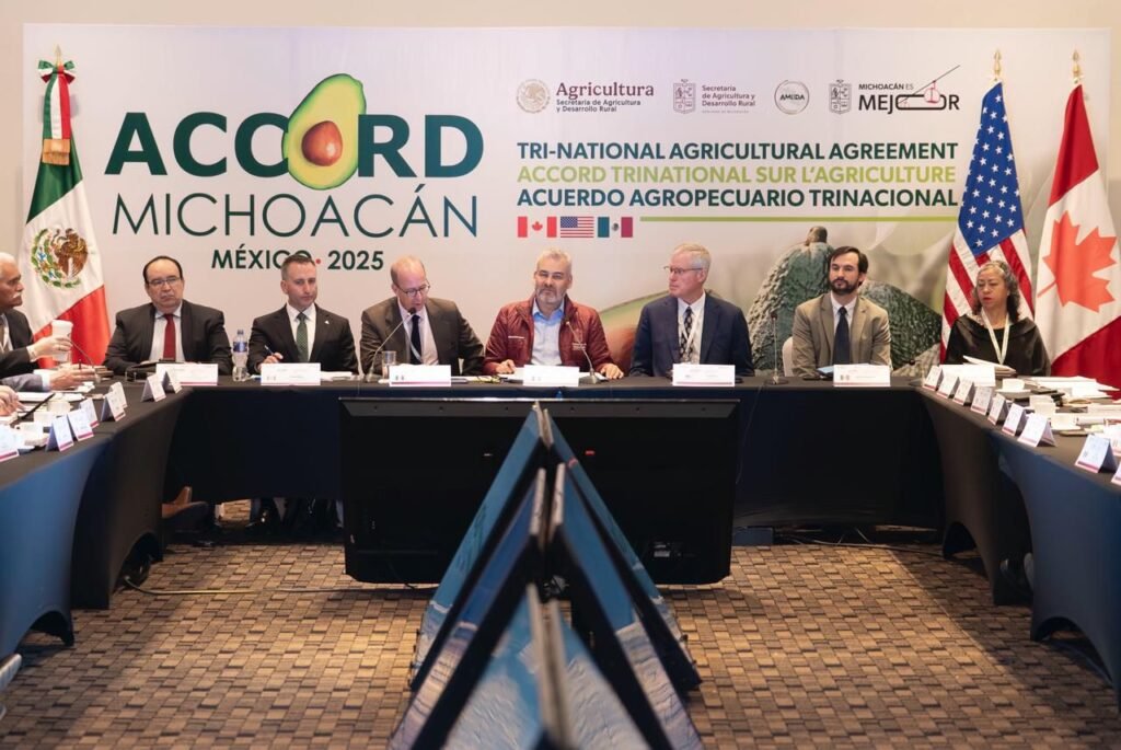 Morelia, Michoacán, 17 de octubre de 2025.- Con el Acuerdo Agropecuario Trinacional que se genera en el marco de la revisión del Tratado entre México, Estados Unidos y Canada (T-MEC), donde participan delegaciones de empresarios agrícolas, ministros de provincias de Canadá y secretarios de Agricultura de estados de la unión americana, se reafirma alianza comercial del sector agropecuario de los tres países, así lo señaló el gobernador Alfredo Ramírez Bedolla.