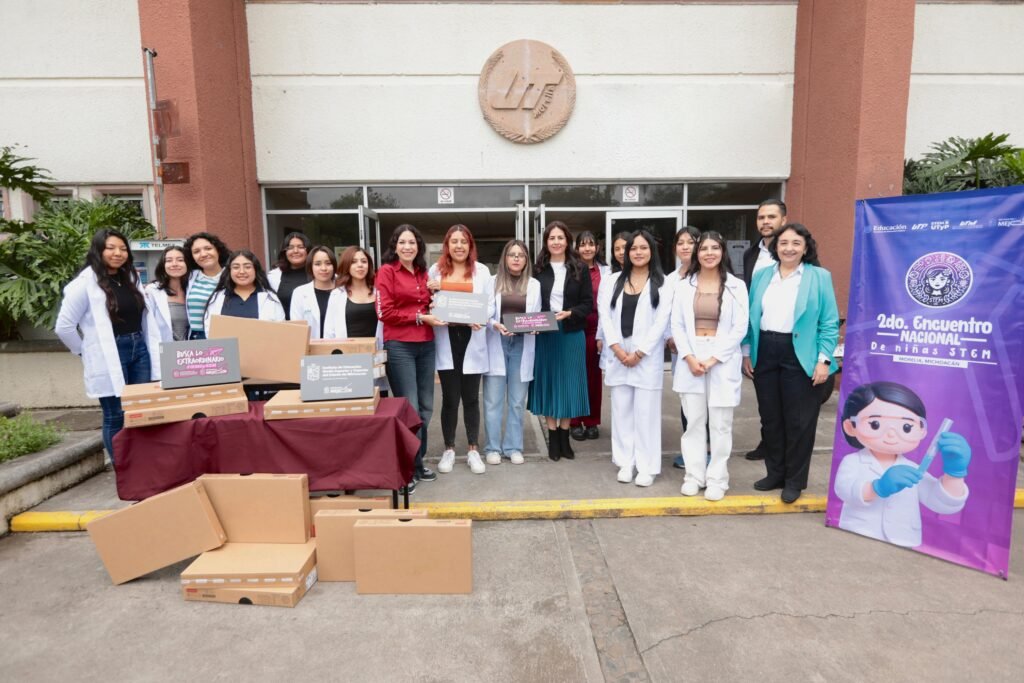 Morelia, Michoacán, 25 de junio de 2025.- Con la entrega de equipos de cómputo, el Instituto de Educación Media Superior y Superior del Estado de Michoacán (Iemsysem) reconoció a 16 estudiantes destacadas de la Universidad Tecnológica de Morelia (UTM), provenientes de los programas de Ingeniería en Biotecnología, Tecnologías de la Información e Innovación Digital, Diseño y Moda Industrial, Energía y Desarrollo Sostenible, Mecatrónica y Enfermería Bilingüe.