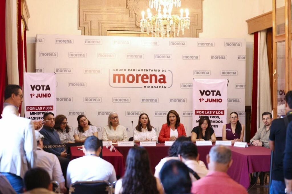 En conferencia de prensa, las legisladoras Emma Rivera Camacho, Nallely Pedraza Huerta, Jacqueline Avilés Osorio, Giuliana Bugarini Torres, Melba Albavera Padilla y Belinda Iturbide Díaz, así como los diputados Antonio Salvador Mendoza Torres y Alejandro Iván Arévalo Vera, informaron que faltan 32 días para renovar al Poder Judicial, por lo que contrario a quienes han querido enviar un mensaje opuesto, compartieron que las y los michoacanos han sido receptivos con esta información en los municipios.