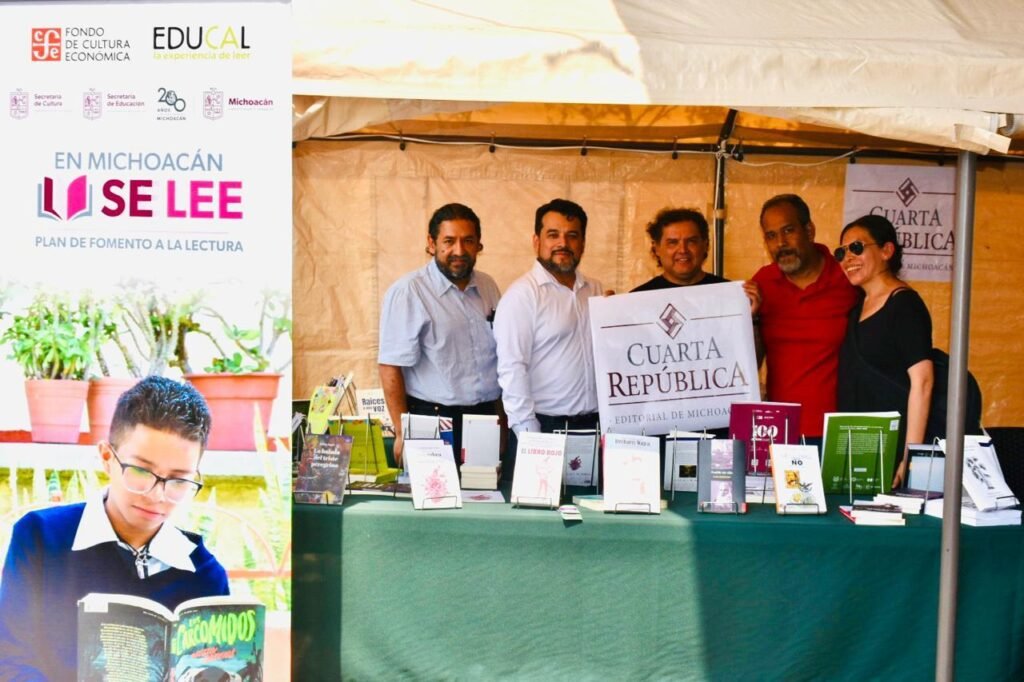 Morelia, Michoacán, 26 de mayo de 2025.- La Secretaría de Educación del Estado (SEE), que encabeza Gaby Molina, a través de Cuarta República, Editorial de Michoacán, continúa con actividades en la Fiesta del libro y la Rosa este domingo, en donde además de la presentación de 19 obras se entregarán ejemplares a las y los asistentes bajo dinámicas de colaboración con casas editoras del estado.