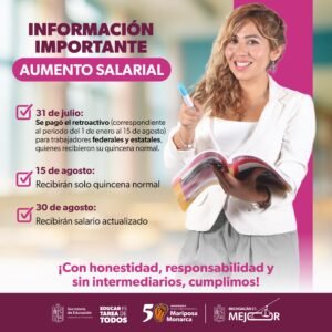 La secretaria de Educación confirmó que los pagos realizados en la quincena del 31 de julio incluyen tanto el salario regular como el ajuste retroactivo, que abarca del 1 de enero al 15 de agosto de 2025. Este proceso asegura una mayor estabilidad y certidumbre en el ámbito educativo del estado.