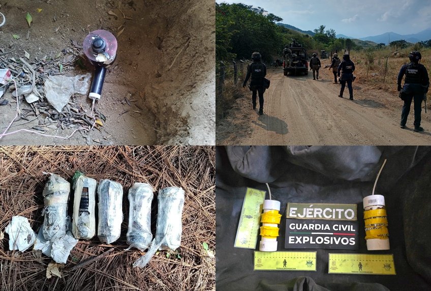 Dentro de las labores del Plan Paricutín en Apatzingán, el personal de la Guardia Civil y el Ejército Mexicano localizó siete dispositivos de fabricación improvisada, abandonados sobre una brecha de terracería entre las localidades de Las Anonas y La Limonera; cuatro de éstos presentaban leyendas alusivas a una célula delincuencial que opera en la región y contaban con sistemas de iniciación mediante apagadores en modalidad de presión.
