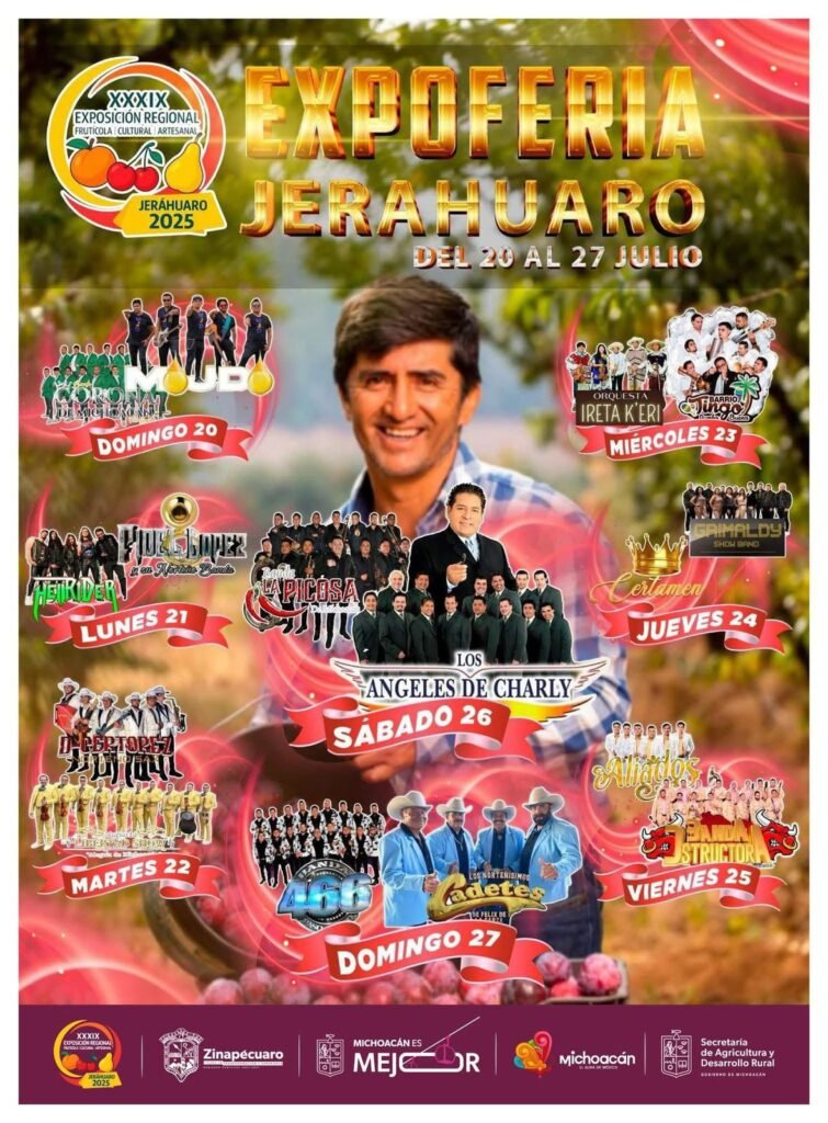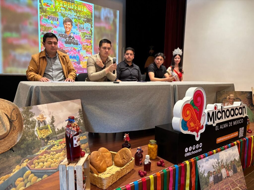 Morelia, Michoacán, 15 de julio de 2025.- La riqueza frutícola de Jeráhuaro será disfrutada del 20 al 27 de julio con su Exposición Regional, Frutícola, Cultural y Artesanal 2025, que se desarrollará del 20 al 27 de julio en la explanada de su plaza principal, informó la Secretaría de Turismo de Michoacán (Sectur), dependencia que encabeza Roberto Monroy García.