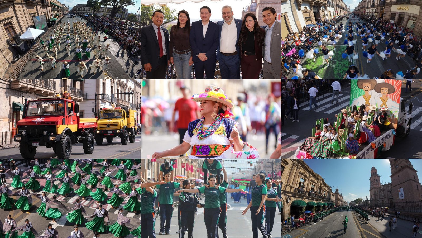 Morelia, Michoacán, 20 de noviembre de 2025.- El gobernador Alfredo Ramírez Bedolla encabezó el tradicional desfile cívico-deportivo para conmemorar el 115 Aniversario del Inicio de la Revolución Mexicana, donde la historia y la fuerza física unieron a miles de familias en el corazón de Morelia.