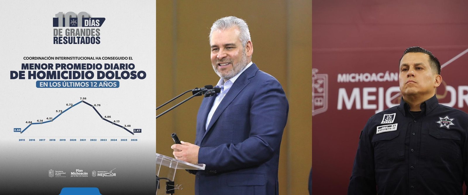 El secretario José Antonio Cruz Medina destacó que estos resultados forman parte de una estrategia basada en inteligencia, investigación y despliegue operativo, la cual ha permitido mantener la tendencia a la baja en los homicidios dolosos en Michoacán, registrando actualmente el promedio diario más bajo de víctimas en los últimos 12 años, con 2.47 casos por día, de acuerdo con las estadísticas presentadas.