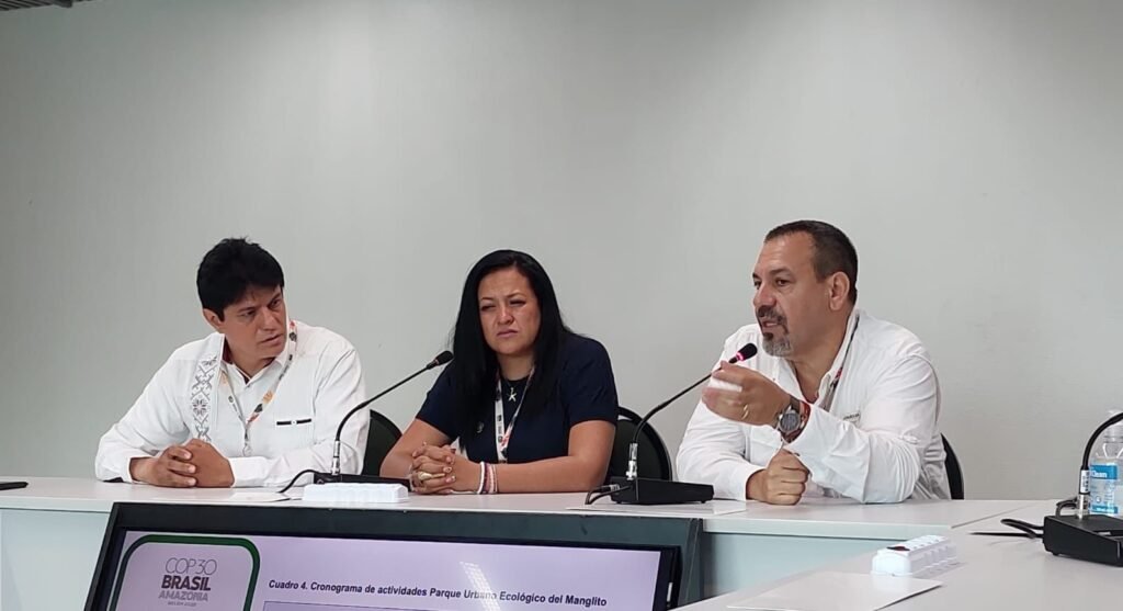 Morelia, Michoacán, 13 de noviembre de 2025.- Durante la Conferencia de las Partes (COP 30) de la Convención Marco de las Naciones Unidas, que se realiza en Belém do Pará, el secretario del Medio Ambiente, Alejandró Méndez López presentó el proyecto de instalación de un cocodrilario ecoturístico, para el manejo y aprovechamiento sustentable cocodrilo de río y cocodrilo de pantano, en el Área Natural Protegida de El Manglito, municipio de Lázaro Cárdenas.