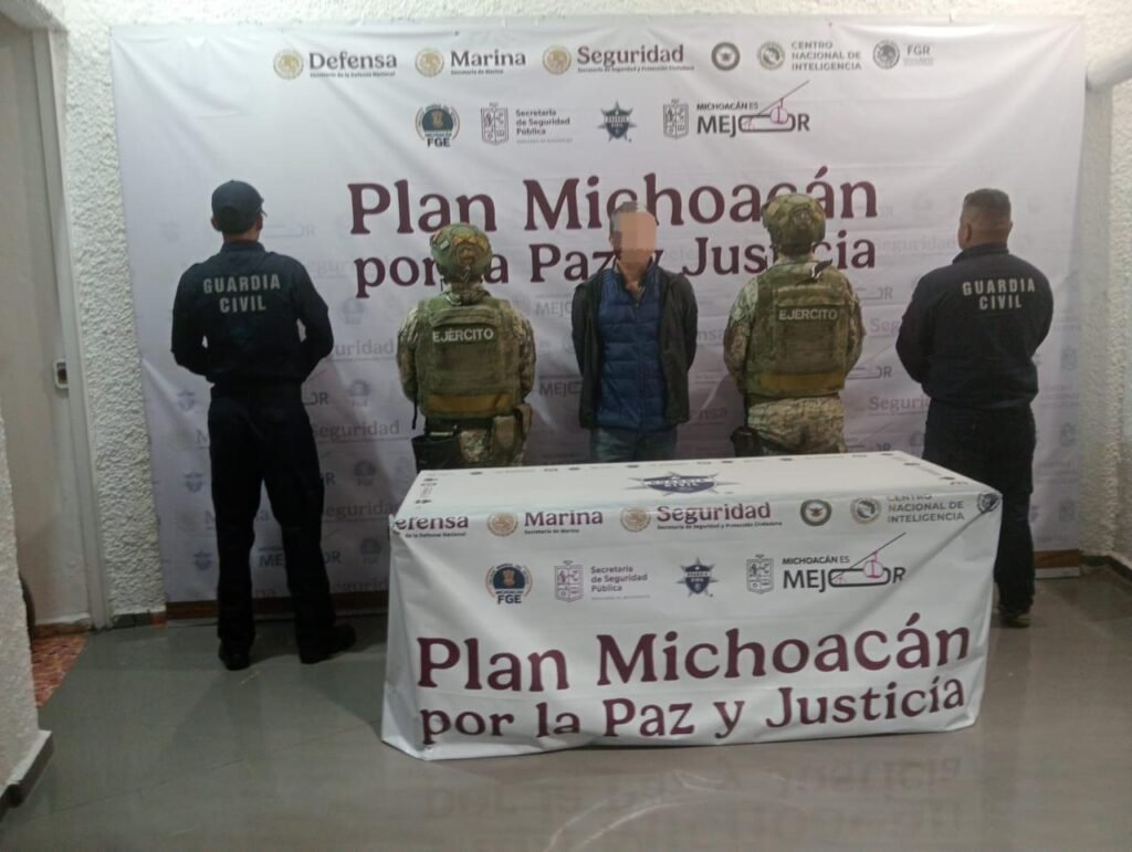 Morelia, Michoacán, 18 de febrero del 2026.- Como parte de los trabajos del Plan Michoacán por la Paz y la Justicia, elementos de las secretarías de Seguridad Pública (SSP) y de la Defensa Nacional (Defensa) detuvieron a dos hombres en posesión de 957 gramos de hierba verde seca con las características propias de la marihuana.