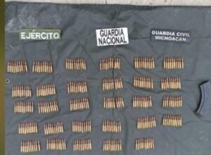 En una zona serrana de la localidad de El Caulote, municipio de Parácuaro, los elementos de la Guardia Civil, Ejército Mexicano y Guardia Nacional ubicaron dos campamentos clandestinos, en los cuales fueron encontrados 290 cartuchos calibre 7.62X51 milímetros, así como un cargador.