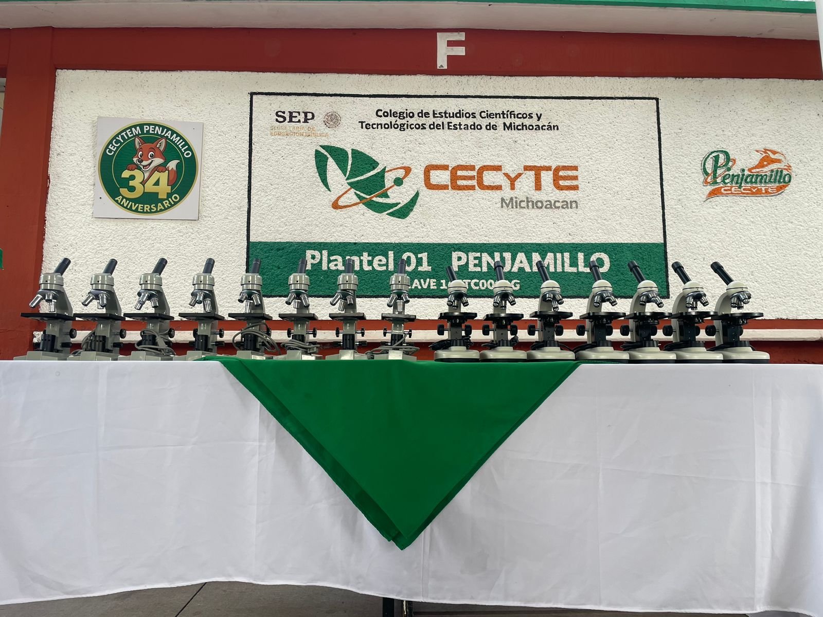 Penjamillo, Michoacán, 21 de abril de 2026.- La comunidad escolar del plantel Penjamillo del Colegio de Estudios Científicos y Tecnológicos del Estado de Michoacán (Cecytem) recibió 18 microscopios monoculares, donados por Gabriela Ivonne Cortés López, migrante originaria de la comunidad de La Noria, en el municipio de Churintzio.