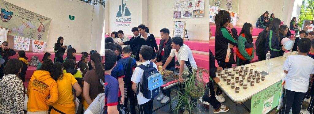 Pátzcuaro, Michoacán, 18 de abril de 2026.- Estudiantes del plantel Huecorio del Colegio de Estudios Científicos y Tecnológicos del Estado de Michoacán (Cecytem) participaron en la Feria Ambiental: Ciencia, Agua y Vida, en la que compartieron sus conocimientos con alumnas y alumnos de primaria y secundaria.
