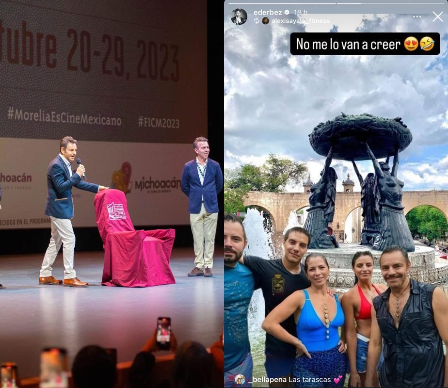 El actor y comediante ha retomado solo algunos de la infinidad de memes que se han compartido en redes sociales para repostearlo en sus cuentas sociales, en uno de ellos se observa a Eugenio, Aislinn, Vadhir, José Eduardo Derbez y Alessandra Rosaldo, frente a las Tarascas en Morelia.
