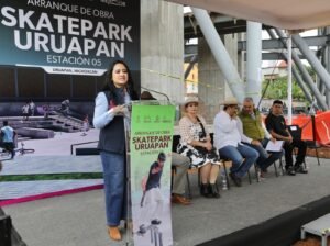 Al poner en marcha la construcción del skatepark de Uruapan, que será el más grande de su tipo en Michoacán, la titular de la Secretaría de Desarrollo Urbano y Movilidad (Sedum) dio a conocer que hasta el momento la dependencia a su cargo ha iniciado la edificación de 12 obras complementarias del teleférico.