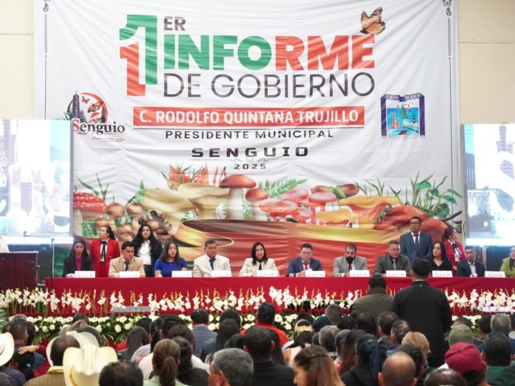 Senguio, Mich., 08 de agosto de 2025.- Senguio es muestra que la experiencia y el trabajo de quien gobierna para la gente da resultados, afirmó el presidente municipal Rodolfo Quintana Trujillo, al rendir su Primer Informe de Gobierno del trienio 2024-2027.