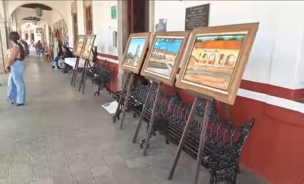 La muestra, instalada en el tradicional Portal Morelos, tiene como propósito enaltecer la identidad histórica y cultural del municipio, a través de obras que retratan paisajes emblemáticos, escenas de la vida cotidiana y elementos distintivos de nuestra comunidad, elaboradas con diversas técnicas de pintura.