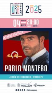 Morelia, Michoacán, 5 de mayo de 2025.- La música ranchera se hará presente este domingo 4 de mayo con Pablo Montero, quien llega al Festival Michoacán de Origen (FMO) para el segundo día de actividades en el área de espectáculos.