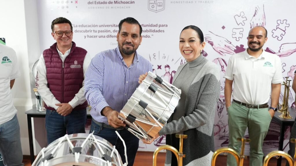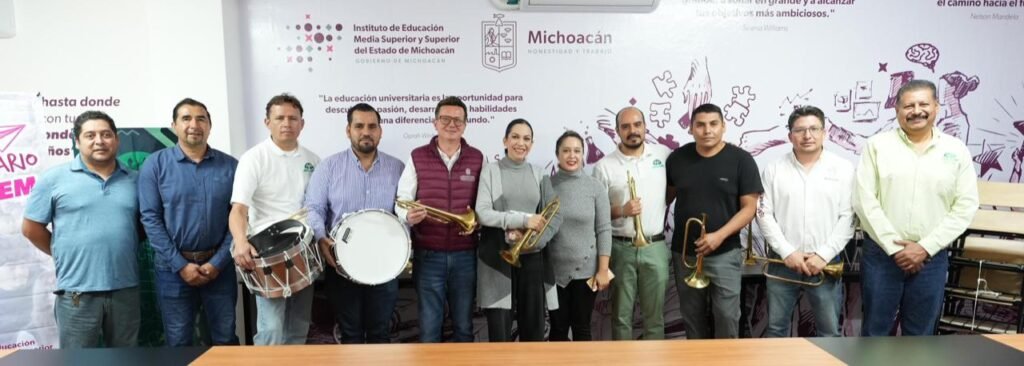 Morelia, Michoacán, 6 de febrero de 2026.- El Instituto de Educación Media Superior y Superior del Estado de Michoacán (Iemsysem) entregó instrumentos musicales y mobiliario escolar a planteles del Telebachillerato Comunitario en distintas regiones del estado para fortalecer la formación integral de las y los estudiantes y promover la cultura de paz desde las aulas.