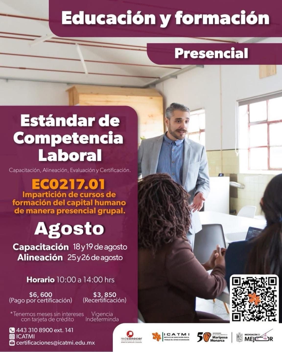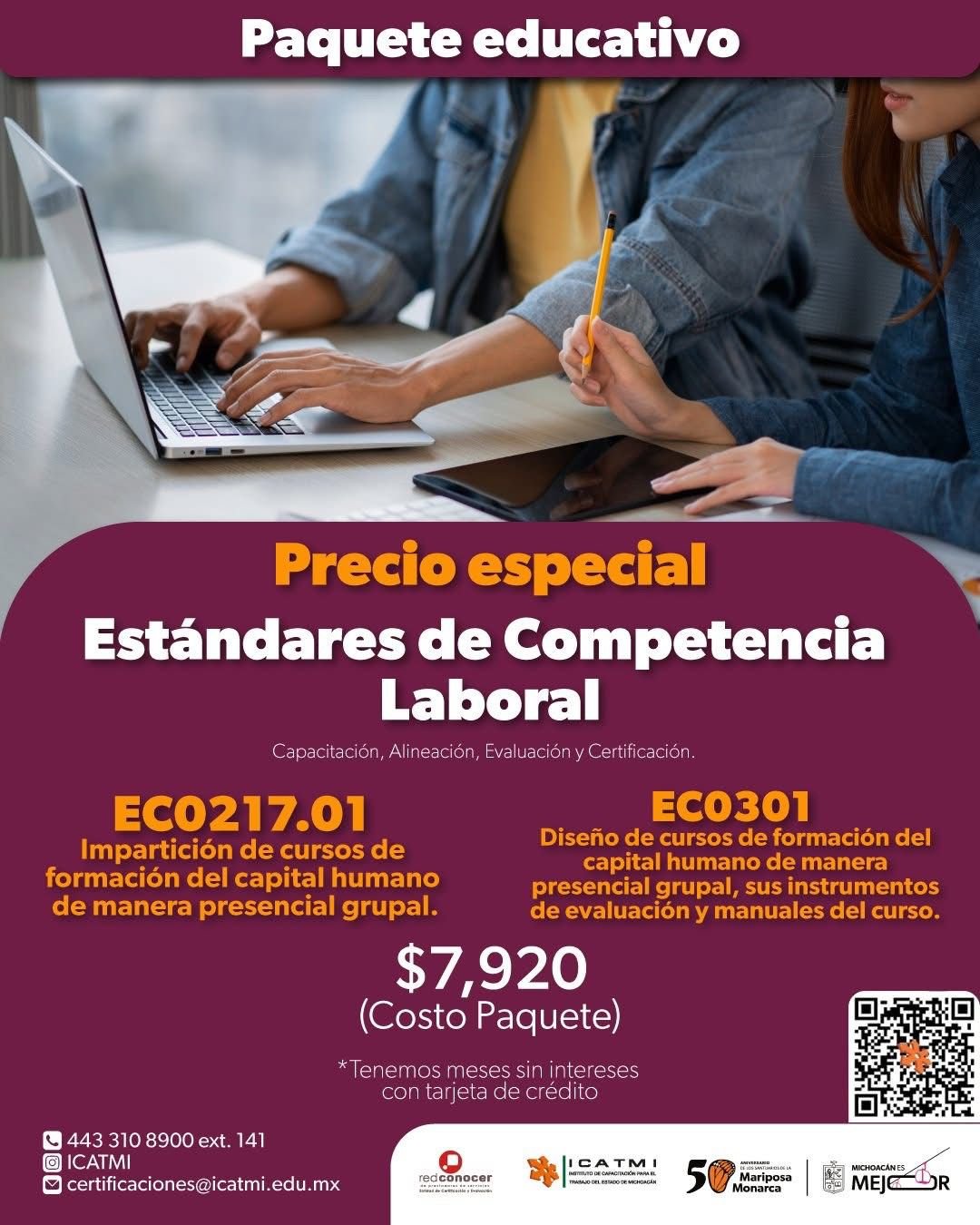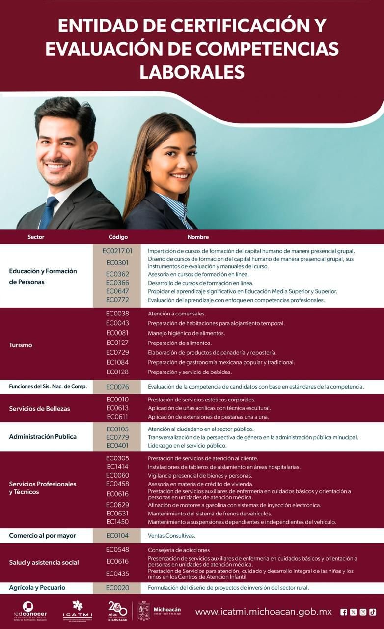 Para acceder a este servicio, se pueden comunicar al teléfono 443 310 8900, extensión 141, enviar un correo a certificaciones.icatmi@gmail.com o consultar el catálogo completo en el siguiente enlace: https://icatmi.michoacan.gob.mx/red-conocer-2/.