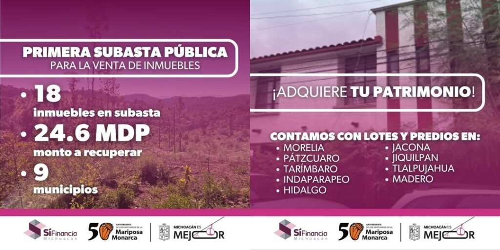 ¡INVIERTE SEGURO! SÍ FINANCIA ANUNCIA SUBASTA PÚBLICA DE INMUEBLES EN MICHOACÁN