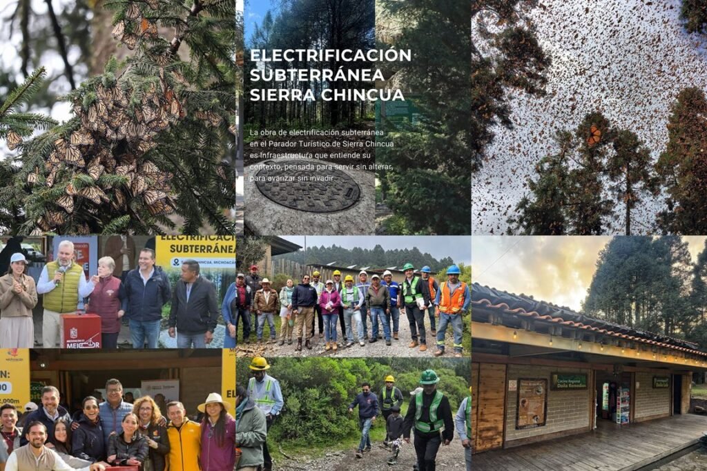 “En la presente temporada, millones de mariposas han llenado de fuerza los bosques de Michoacán, como en Sierra Chincua, donde la electrificación subterránea representa una infraestructura estratégica. Este proyecto, desarrollado conforme a la Manifestación de Impacto Ambiental, fue diseñado para mejorar la calidad de vida de la comunidad y fortalecer el parador sin comprometer el equilibrio ambiental”, señaló Roberto Monroy García, titular de la Sectur.