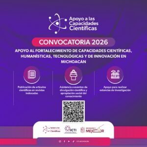 Morelia, Michoacán, 25 de abril de 2026.- El Instituto de Ciencia, Tecnología e Innovación (ICTI) anunció la apertura de la convocatoria “Apoyo para el Fortalecimiento de las Capacidades Científicas, Humanísticas, Tecnológicas y de Innovación en Michoacán”, dirigida a impulsar la participación de la comunidad académica y científica en actividades de divulgación y formación.