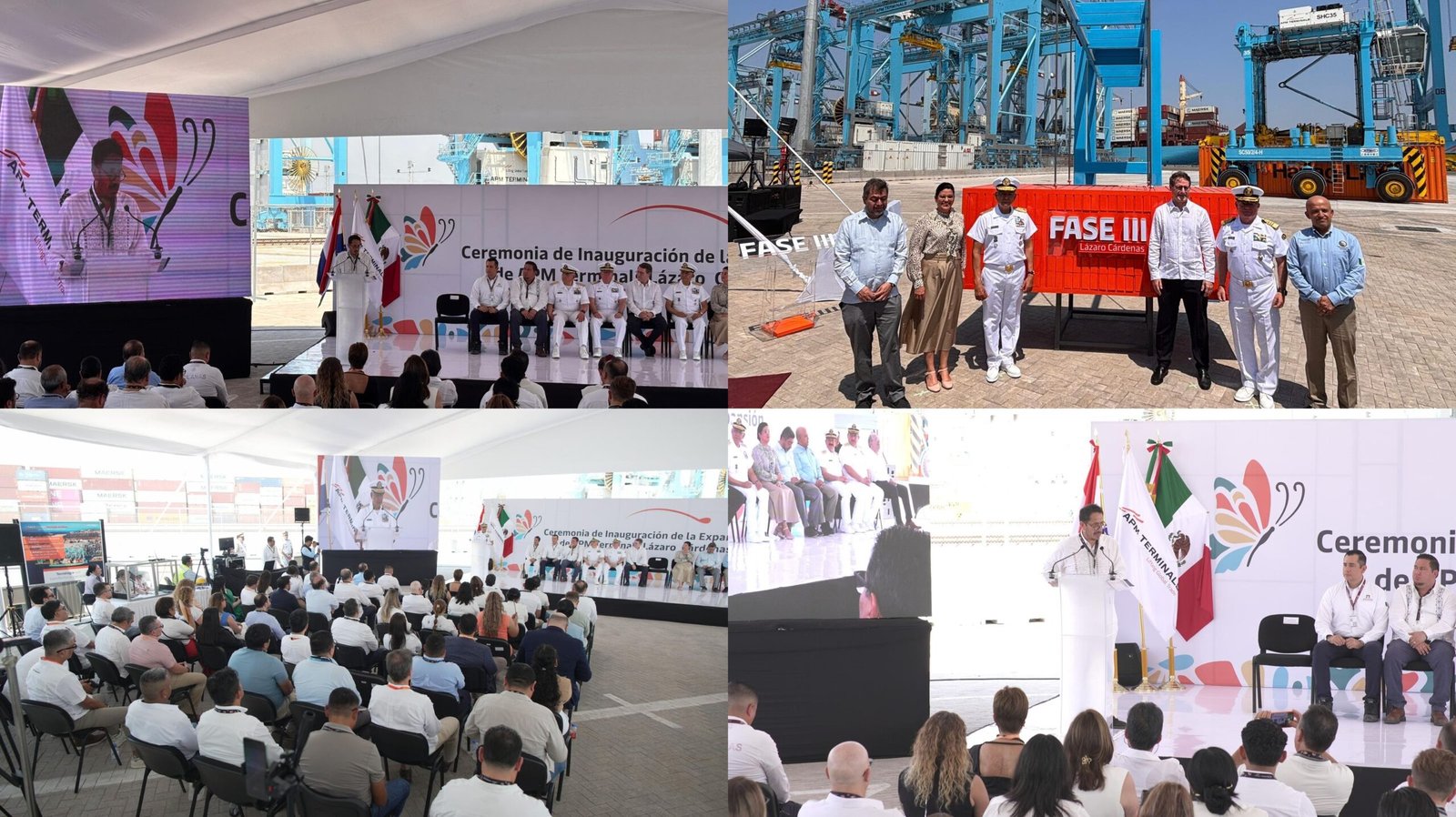 Lázaro Cárdenas, Michoacán, 20 de marzo de 2026.- Con una inversión de 140 millones de dólares, se inauguró la Fase II de APM Terminals en Lázaro Cárdenas, consolidando al puerto como un referente logístico en el Pacífico. En el marco del evento, la compañía anunció una inversión adicional de 350 millones de dólares para la Fase III, adelantando su ejecución ocho años conforme al plan original.