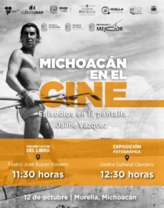 Morelia, Michoacán, 11 de octubre de 2025.- La Secretaría de Cultura de Michoacán (Secum) invita a la inauguración de la exposición “Michoacán en el cine. El orgullo de un legado”, integrada por fotografías de la colección de la Filmoteca de la UNAM, que se realizará el sábado 12 de octubre a las 12:30 horas en el patio principal y pasillos del Centro Cultural Clavijero, como parte del Festival Internacional de Cine de Morelia (FICM).