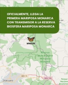 - Identificada como MW026, esta viajera forma parte del Proyecto Colaboración Monarca