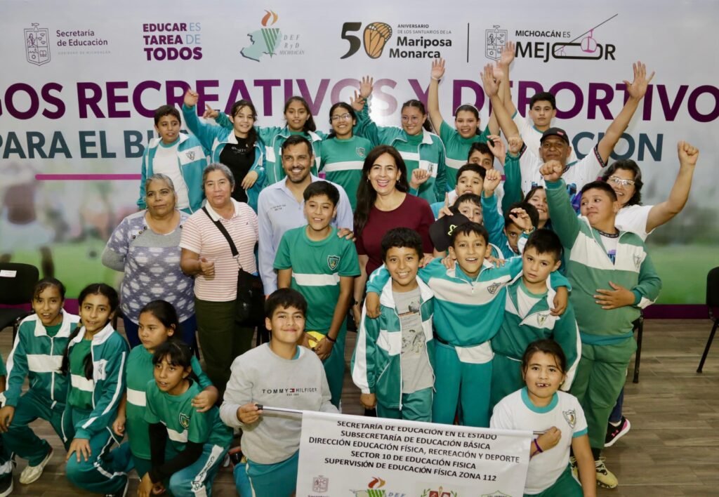 Morelia, Michoacán, 5 de junio de 2025.- Más de 60 mil estudiantes de todo el estado han formado parte de los “Juegos Recreativos y Deportivos para el Bienestar en la Educación”, mismos que para su etapa estatal fueron inaugurados por la secretaria de Educación, Gaby Molina, en el auditorio Heber Soto del Instituto Tecnológico de Morelia (ITM).
