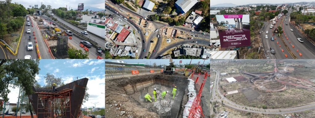 Morelia, Michoacán, 25 de junio de 2025.- Con el fin de mejorar la conectividad, los tiempos de traslado, así como impulsar el desarrollo de Michoacán, el Gobierno estatal mediante la Secretaría de Comunicaciones y Obras Públicas construye seis nuevos distribuidores viales en Morelia, Uruapan y Zitácuaro con una inversión superior a los mil 700 millones de pesos.