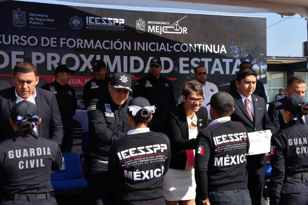 Morelia, Michoacán, 19 de diciembre de 2025.- Michoacán reforzó su estado de fuerza con la incorporación de 500 nuevos elementos de la Guardia Civil, quienes concluyeron su formación y se graduaron como Policías de Proximidad, informó la directora general del Instituto Estatal de Estudios Superiores en Seguridad y Profesionalización Policial (IEESSPP), Maribel Julisa Suárez Bucio.