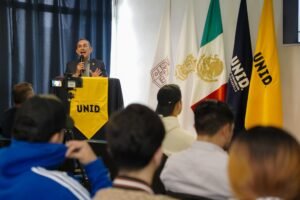 Durante una ponencia ofrecida en la Universidad Interamericana para el Desarrollo (UNID), campus Morelia, destacó que esta política federal representa una decisión valiente y profundamente humanista, ya que busca absorber el impacto económico de dicho impuesto a través de la tarjeta de Financiera para el Bienestar (Finabien), garantizando que los recursos enviados por las y los paisanos, lleguen íntegros a las familias mexicanas.