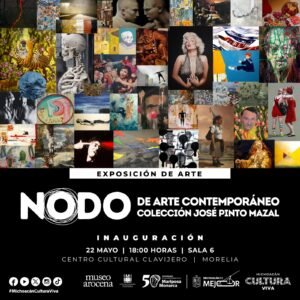 Morelia, Michoacán, 19 de mayo de 2025.- El arte contemporáneo toma un nuevo impulso en Michoacán con la inauguración de NODO, una exposición que reúne 55 obras de pintura, escultura, instalación y medios digitales, como parte de la destacada Colección José Pinto Mazal. La cita es este 22 de mayo a las 18:00 horas en la Sala 6 del Centro Cultural Clavijero, con entrada libre para todo público.