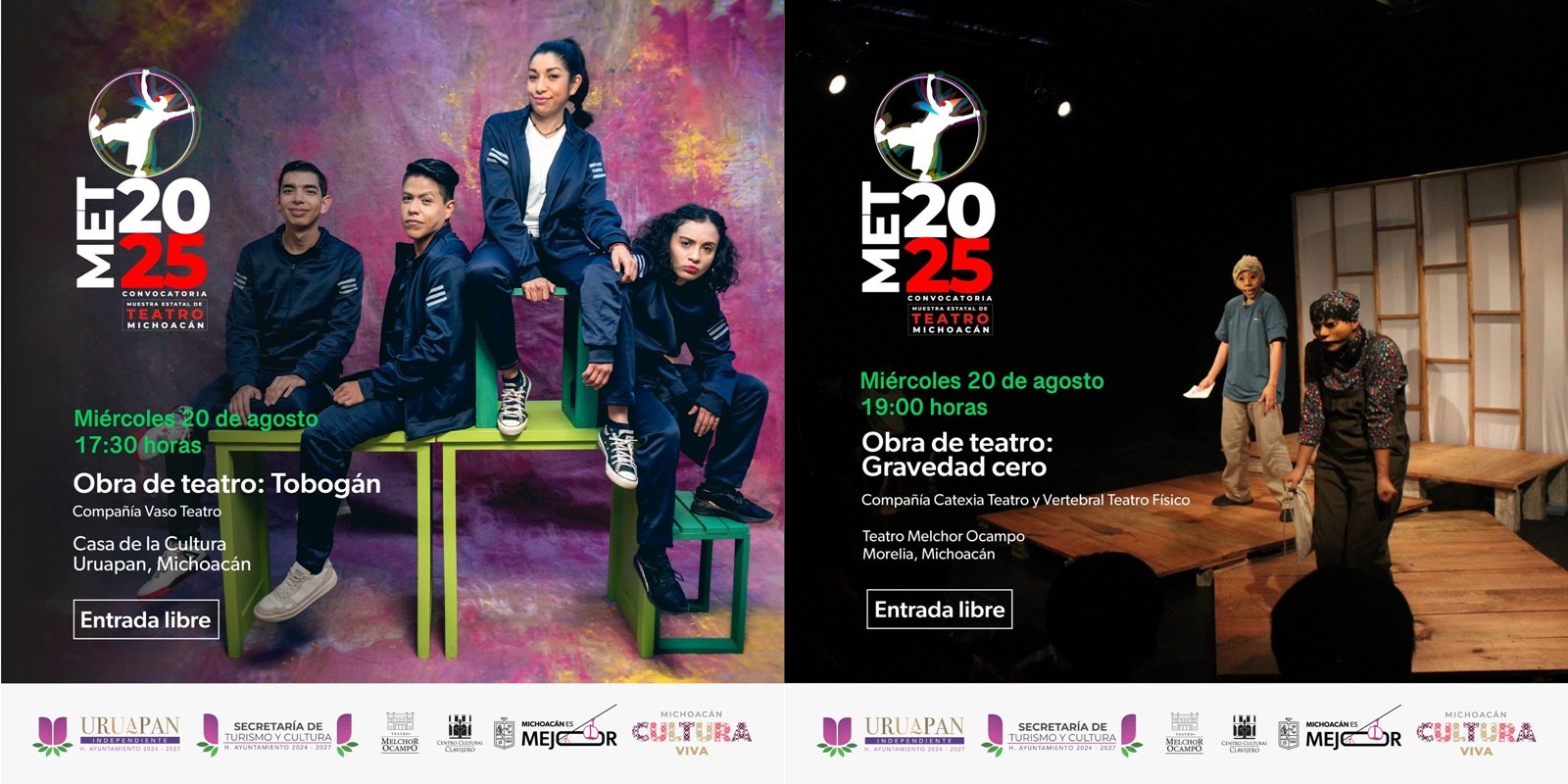 En Uruapan, la compañía Vaso Teatro presentará “Tobogán” a las 17:30 horas en la Casa de la Cultura. Dirigida a público mayor de 12 años, esta comedia reflexiona con humor sobre la adolescencia, los riesgos de la sexualidad irresponsable y las violencias que enfrentan las mujeres. Vaso Teatro, compañía fundada en 2010, se caracteriza por la creación de textos originales y cuenta con un sólido recorrido en festivales como la Muestra Nacional de Teatro Colima 2019.