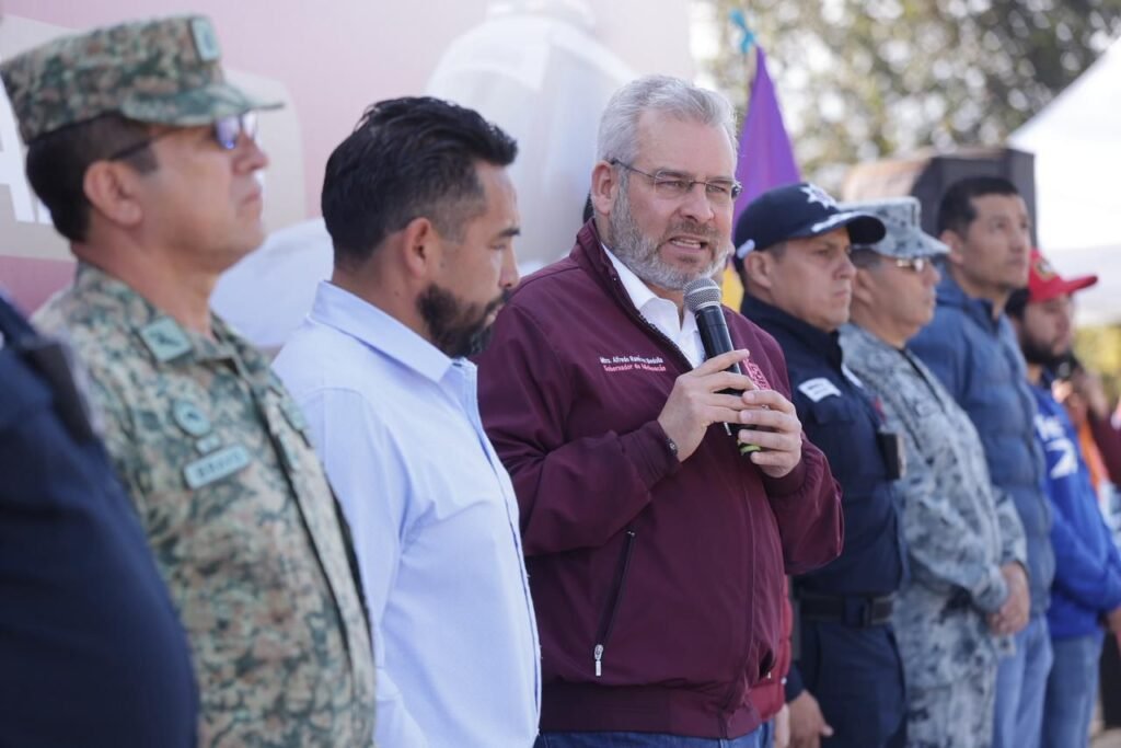 Acompañaron al gobernador Raúl Zepeda Villaseñor, secretario de Gobierno; Juan Bravo Velázquez, comandante de la 21 Zona Militar; Ramsés Adalid Vega Sayabedra, subsecretario de Operación Policial; Roberto Eduardo Molina García, comandante de la Guardia Nacional en Michoacán; Epifania Gómez Bravo, presidenta del Concejo Comunal de Angahuan; Juan Paz Aguilera, presidente del Concejo Comunal de Zacán; José Manuel Méndez Aguilar, presidente del Concejo Comunal de Nuevo Zirosto; Francisco Javier Rodríguez, presidente del Concejo Comunal de San Francisco Peribán, así como Edwin Osvaldo Medina García, representante del Concejo Comunal de Santa Ana Zirosto.