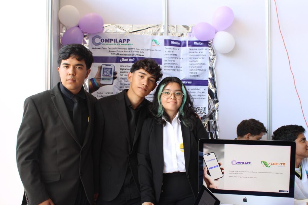 Uruapan, Michoacán, 27 de marzo de 2026.- El talento de las y los alumnos del Colegio de Estudios Científicos y Tecnológicos de Michoacán (Cecytem), pertenecientes al plantel Uruapan, cruzará fronteras. Los estudiantes Saasiluh Flores López, Oscar Hernández Becerra y Juan Cervantes Guizar obtuvieron su pase a la Feria de Ciencia Joven Brasil 2026, tras desarrollar CompilAPP, una herramienta innovadora que simplifica el aprendizaje de la programación. El encuentro internacional se llevará a cabo el próximo mes de diciembre.